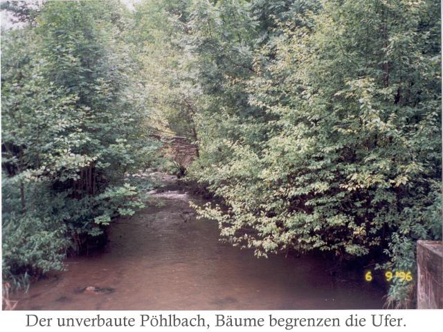Unverbaute Flussabschnitte, ein Schauspiel der Natur. Hier einer der letzten naturnahen Abschnitte des Pöhlbachs im Erzgebirge. Leider gibt es diese Bilder nur noch selten, denn durch die Förderpolitik Sachses wurden 80 % der Flüsse im Erzbebirge schon zerstört. |