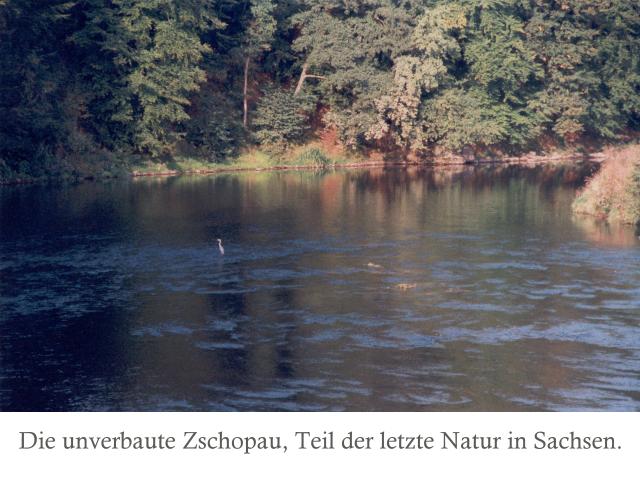 Unverbaute Flussabschnitte, ein Schauspiel der Natur. Hier einer der letzten naturnahen Abschnitte der Zschopau im Erzgebirge. Leider gibt es diese Bilder nur noch selten, denn durch die Förderpolitik Sachses wurden 80 % der Flüsse im Erzbebirge schon zerstört. |