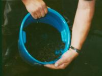 Bodensubstrat des Gewässers absetzen.