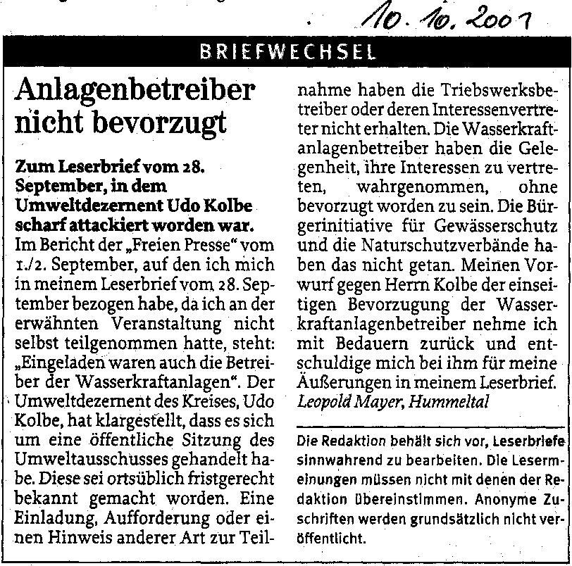 in meinem Leserbrief. Leopold Mayer, Hummeltal