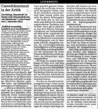 Leserbrief vom 28.September, in dem Umweltdezernent