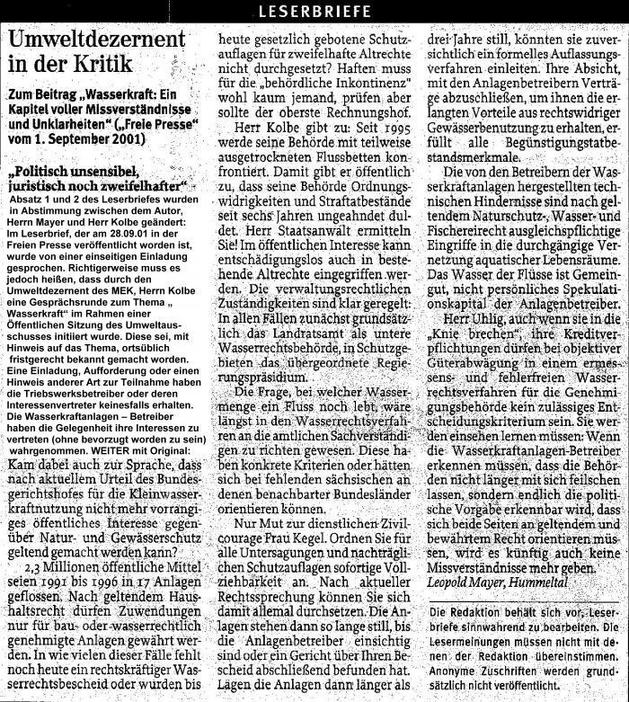 Leserbrief, der am 28.09.01 in der Freien Presse