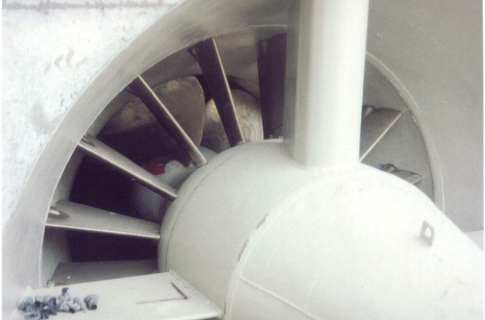 Kleine Kaplan-Turbine (90 kW). Beim Durchgang