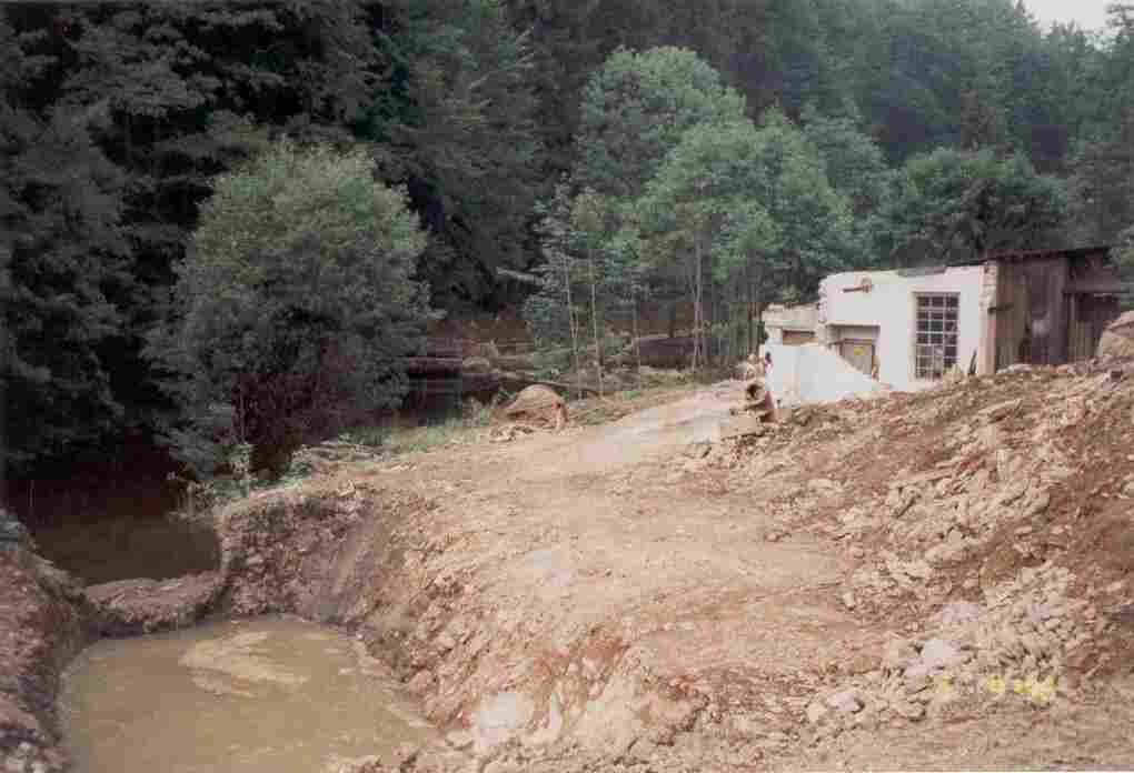 Absenkung des Wehrgrabens unterhalb der Turbine, der das Wasser wieder in den Fluss leiten
