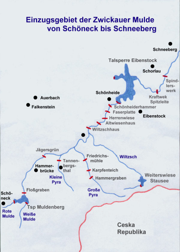 Floßgraben WKA Jägersgrün WKA Friedrichsmühle Große Pyra WKA Witzschhaus WKA Altwiesenhaus WKA Herrenwiese WKA Faserplatte WKA Schönheiderhammer Talsperre Eibenstock WKA Spitzleite WKA Spindlerswerk